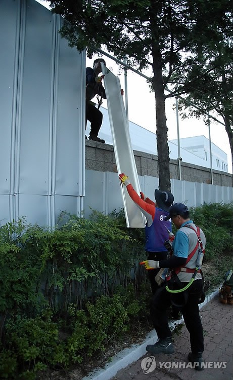 Çö´ëÂ÷´Â 20ÀÏ·Î ¿¹Á¤µÈ Àü±¹ Èñ¸Á¹ö½ºÀÇ ´ë±Ô¸ð Áý°á¿¡ ´ëºñÇØ »ç³» ÁøÀÔ ½Ãµµ¸¦ Â÷´ÜÇϱâ À§ÇØ ÄÁÅ×ÀÌ³Ê À庮À» ¼¼¿ì°í °øÀå ¿ïŸ¸®µµ ³ô¿´´Ù.