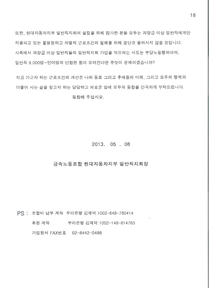 Çö´ëÀÚµ¿Â÷±×·ì °£ºÎ»ç¿ø³ëµ¿Á¶ÇÕ