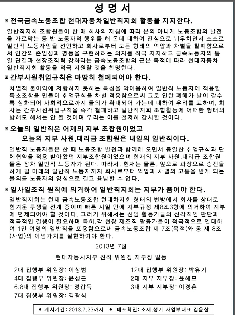 Çö´ëÀÚµ¿Â÷±×·ì °£ºÎ»ç¿ø³ëµ¿Á¶ÇÕ